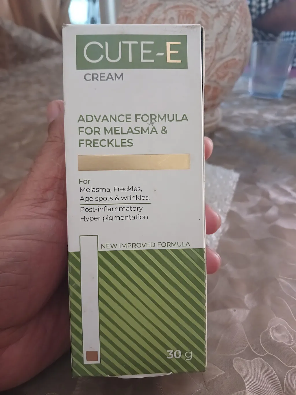 Cute-E Cream clears melasma when used consistently. It contains brightening ingredients that remove hyperpigmentation and help achieve clear skin.